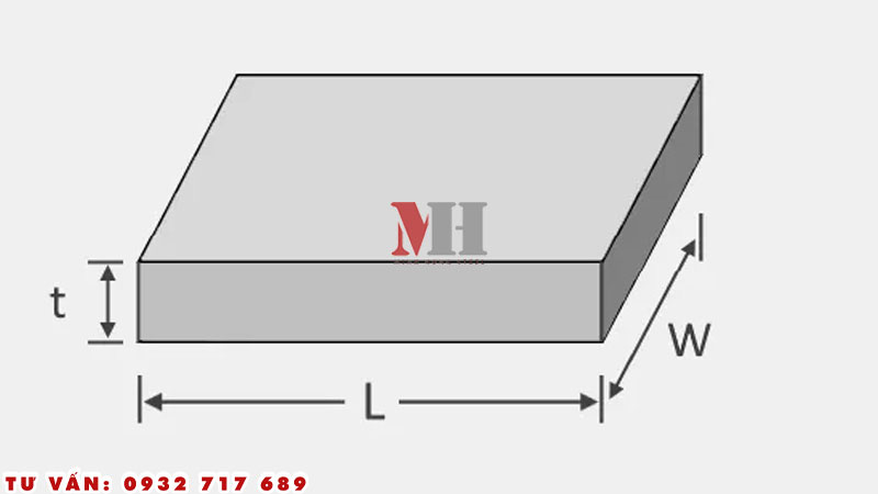 Trọng lượng (kg) = Chiều dài (m) × Chiều rộng (m) × Độ dày (m) × Tỷ trọng thép (kg/m³)